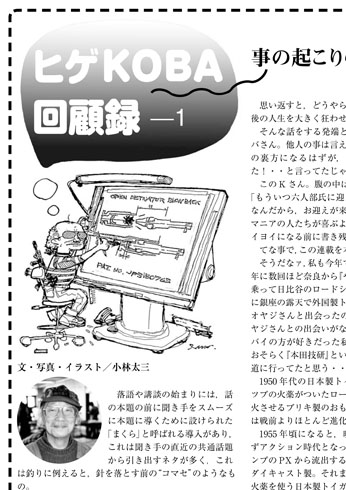 (有)TANIOKOBA の社長でありトイガン界の重鎮、小林太三(たぞう)は遂に、そのベールに包まれたトイガンの生み出されるまでを語る回顧録を、“GUN magazine”編集部のご協力で連載することとなりました。モデルガン、エアガンファンはもちろんのこと、映画、特撮、ミリタリーファン・・・・・・などなど様々なジャンルでも注目の話が飛び出しますよ。